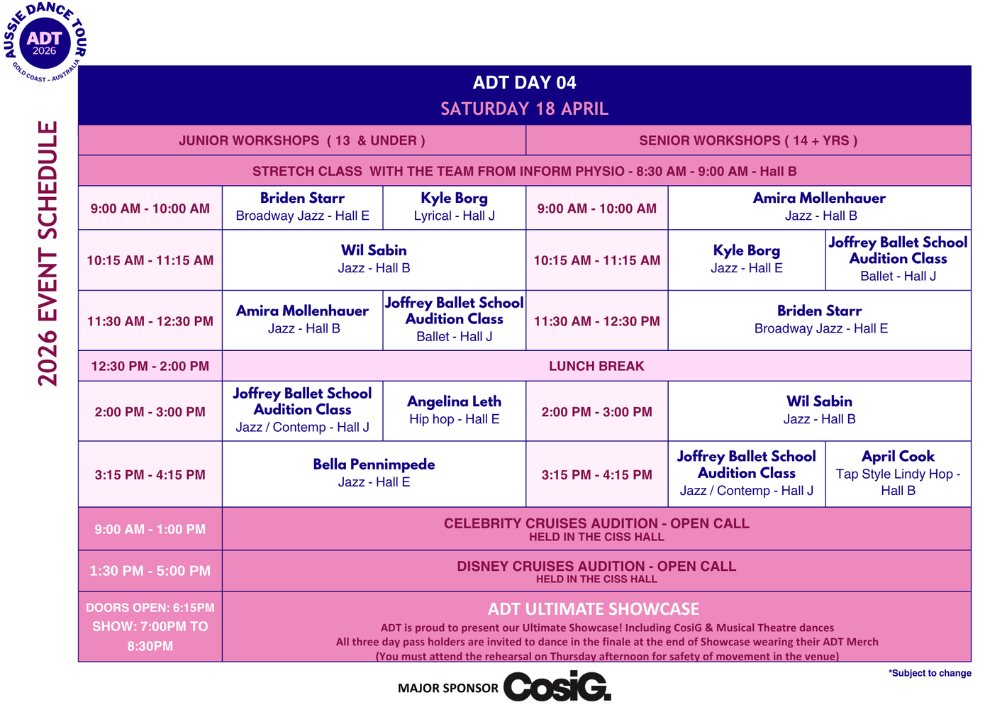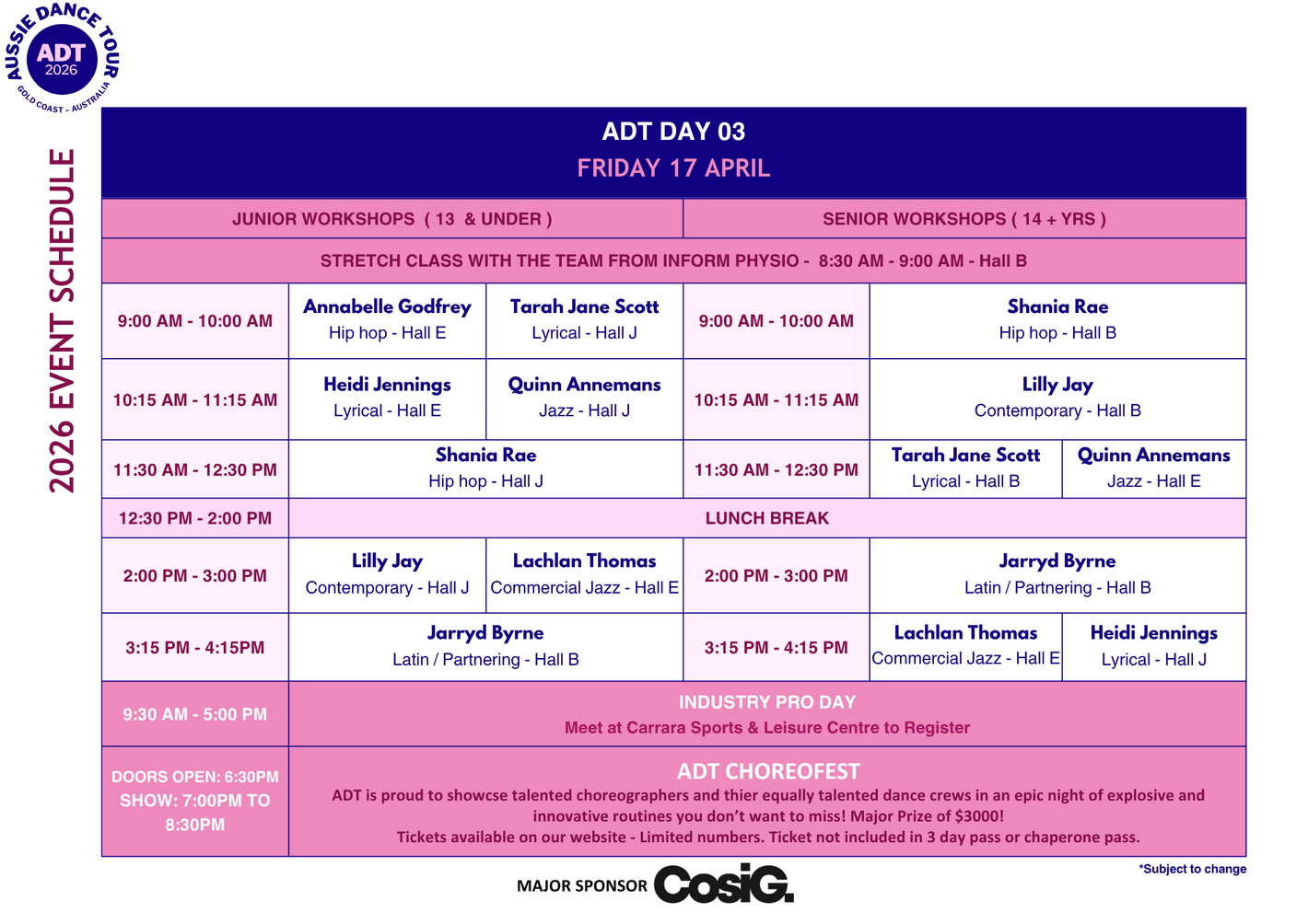 Our event features workshops with leading choreographers, spectacular dance showcases, and amazing opportunities for up-and-coming talent. You'll get the chance to learn from the best and develop your skills, all while having fun and making new friends.